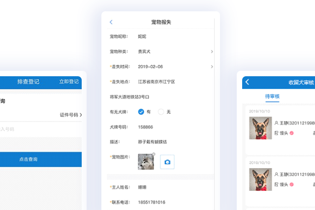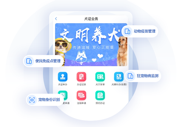 城市宠物监管平台依托于融合物联网、大数据与人工智能技术打造了“政府—宠物医院—养宠用户—普通市民”多位一体的养宠物管理与服务平台。 平台根据需求建立相应的信息管理系统,可实现宠物个体甄别、行踪控制、狂犬病免疫、虫病防控和宠物年检等方面的社会化管理,为解决城市宠物总量控制,宠物粪污染环境,宠物被盗、丢失、流浪,疾病防控,恶宠伤人等一系列城市卫生、治安问题、民事纠纷,以及公共卫生安全提供方案和依据。